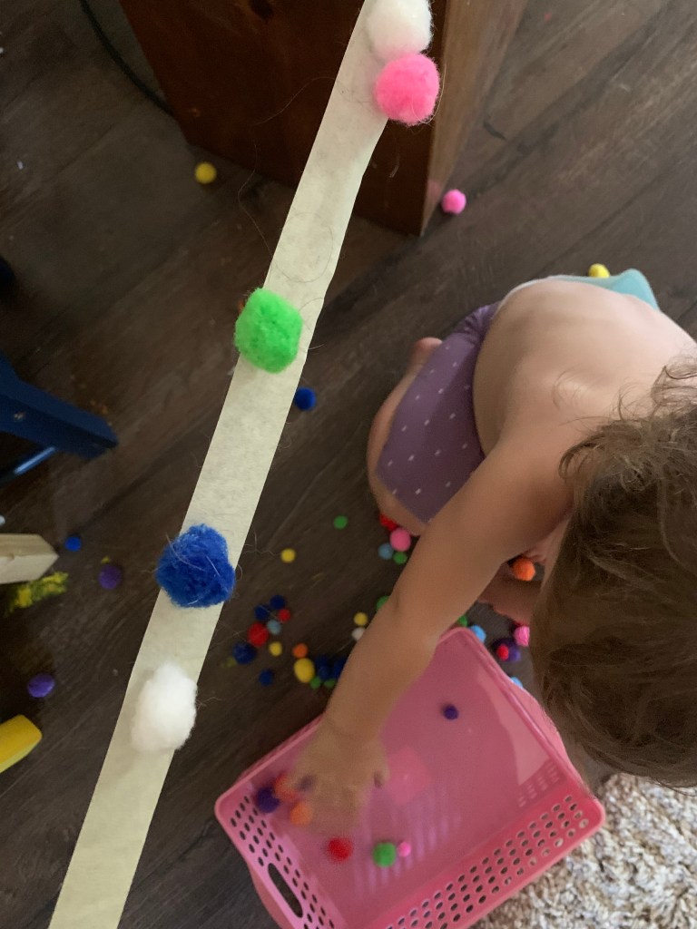 Tape and pompoms keep them entertained long enough that I can enjoy my overnight oatmeal! Totally recommend!